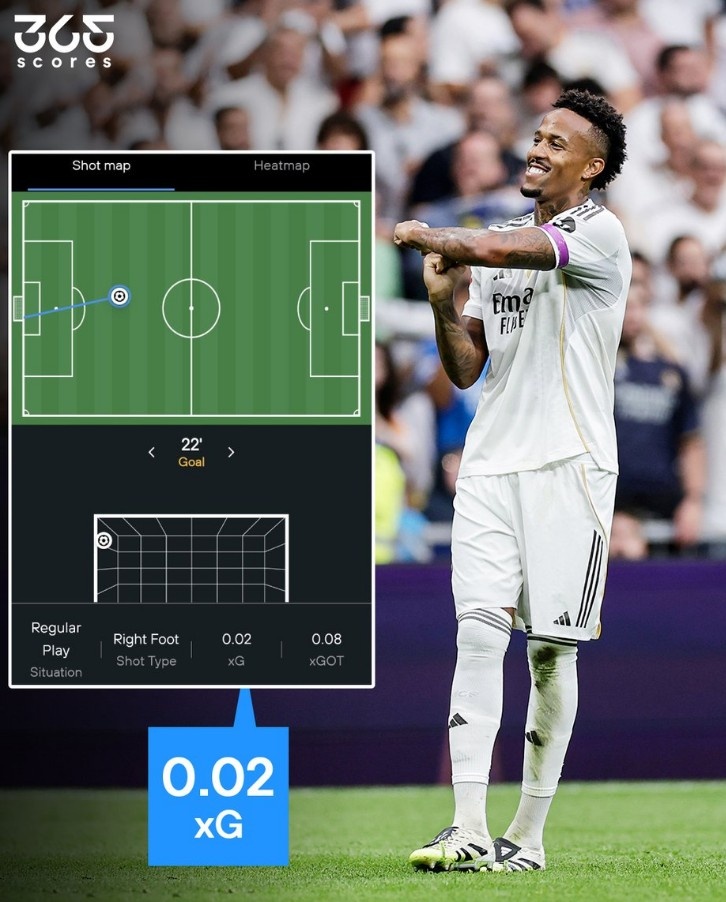 > 石破天惊,米利唐远射世界波的预期得分 只有0.02!