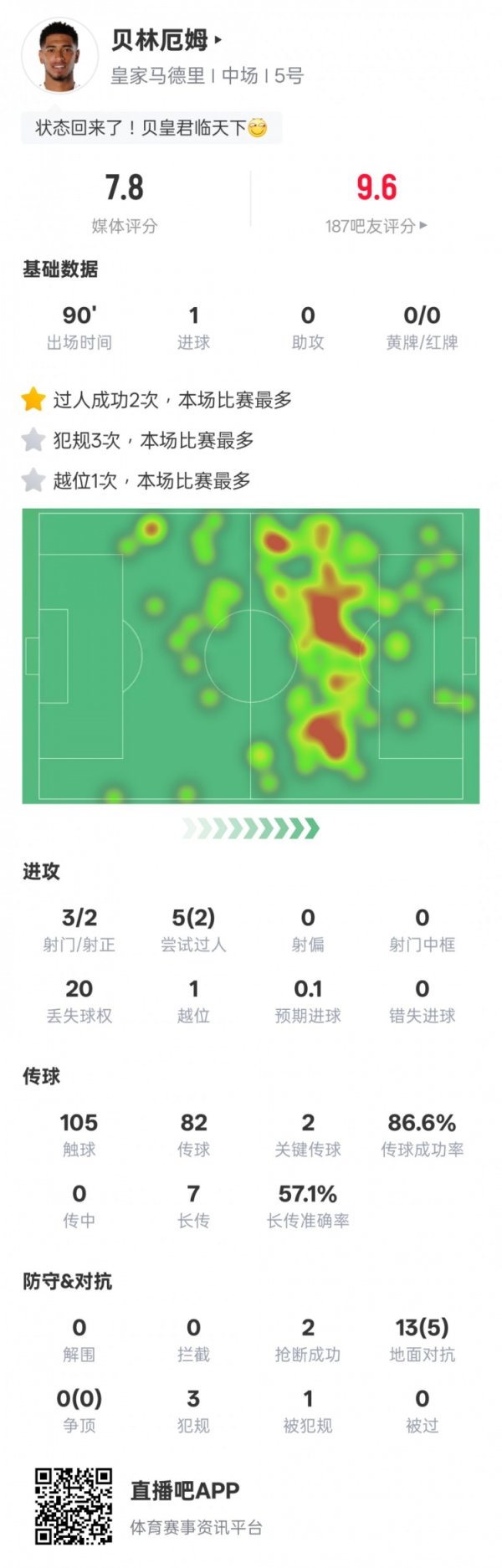 c罗西甲联赛冠军 11月2日讯 2025-26赛季西甲第11轮,皇马4-0瓦伦西亚。贝林厄姆杆位出战,打进1粒得分 ,送出2次关键传送球 ,还有2次过人成功和2 ...