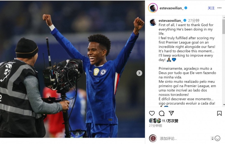 埃斯特旺社媒晒出庆祝的照片,配文:“首先,免费欧洲杯直播我要感谢上帝在我生命中所做的一切。在与球迷共度的非凡之夜攻入个人英超首球之后,我感到无比满足!