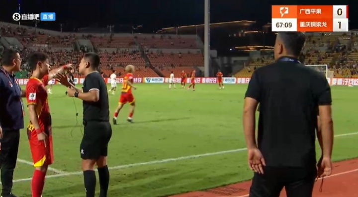 10月05日讯 中甲第25轮广西平果主场作战 vs重庆铜梁龙赛事 中,铜梁龙球员解围时踢到对手肚子,现场字幕给出VAR介入了此次判决 ,可能要判给广西十二码球,然而现场撞车不断。