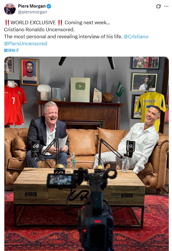 “!!全球独家!!下周即将推出......C罗无删减版采访。这是他一生中最私密、最坦诚的采访。”