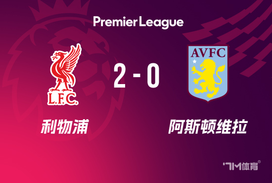 利物浦2-0维拉暂升第3 萨拉赫连场破门大马丁送礼