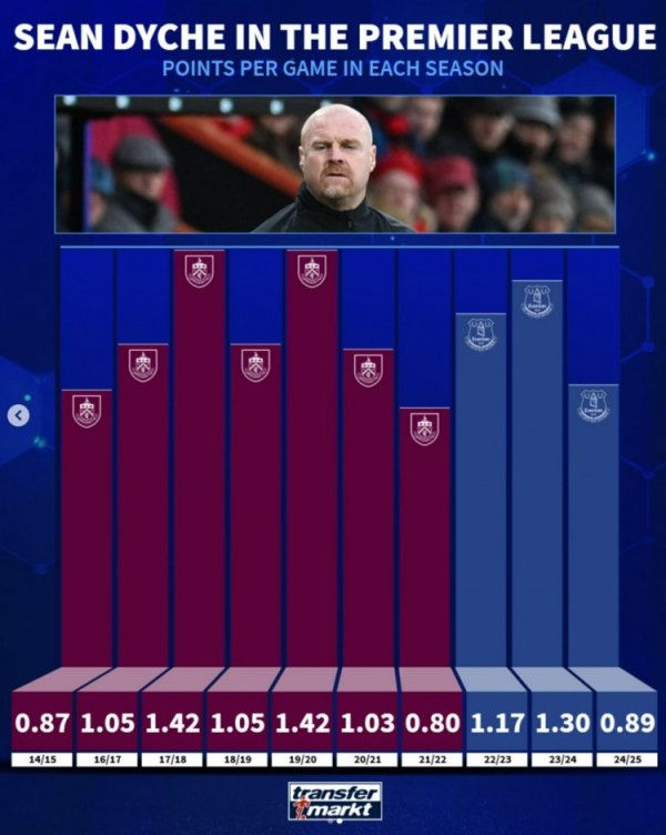 在哪里看足球直播免费 10月21日讯 戴奇正式执教诺丁汉森林,德转也盘点了戴奇此前执教伯恩利以及埃弗顿在英超的赛季场均积分情况,具体如下: 14/15赛季:0. ...